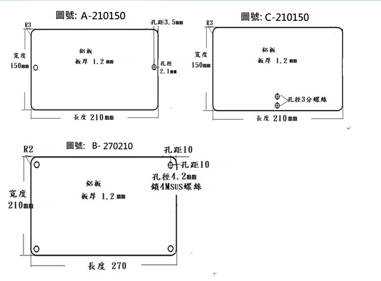 材質: 各種材質底板:例如:鋁板,塑鋁板,不鏽鋼板,ABS塑膠板;PC板等,客製化製作
